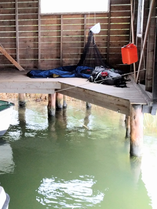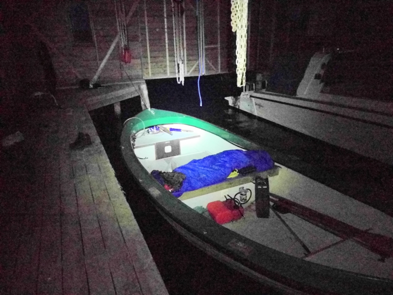 Finns någon bättre plats att sova på än trägolvet i ett båthus? Ja, att sova i en öppen båt i ett båthus.