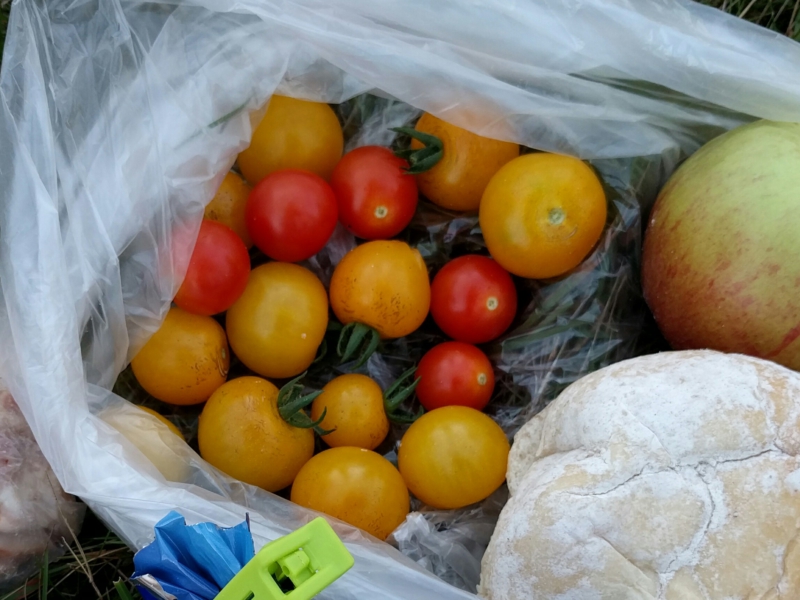 Efter att ha ätit alla dessa hemodlade tomater som folk gett mig hade jag fått en vanlig tomat. Jag tog en tugga, hajade till och höll upp den framför mig. Tittade förvånat på den. Var det en tomat? Tog en tugga till. Jo, om man kände efter fanns nog lite tomatsmak där. Konstigt.