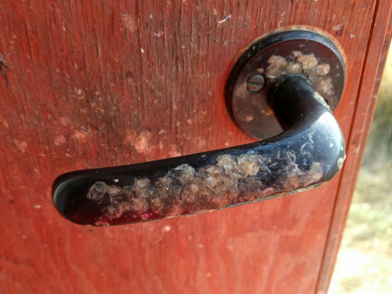 Fiskarbodens handtag Posted on 21 October, 2016 by admin — No Comments ↓ Dörrhandtaget på insidan av en fiskares bodsdörr. Fiskfjällen har polerats in och blivit ett med handtaget.