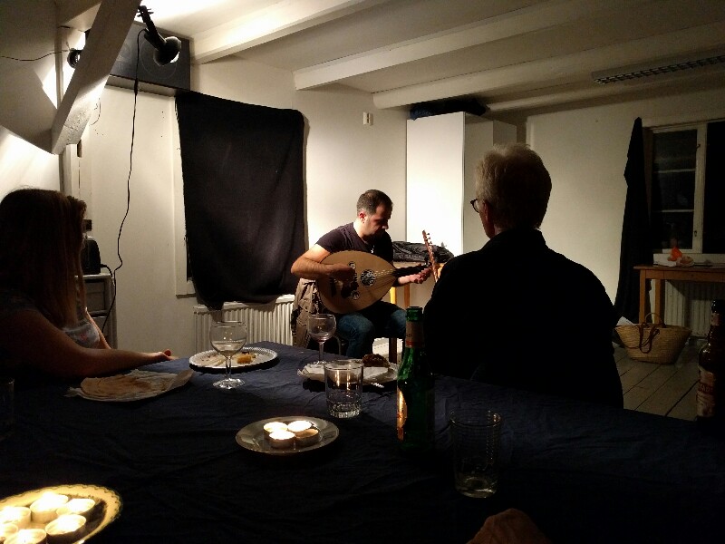 Vernissagen bestod av mingel, tal, själva utställningen förstås, knytis, ett artist talk och så musik med Sarbast Hasan. En mycket trevlig kväll!